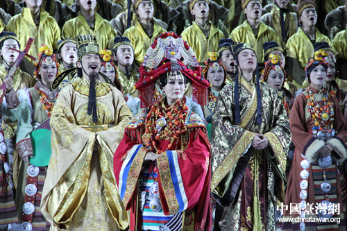 史詩(shī)音樂劇《文成公主》的演出現(xiàn)場(chǎng)。(中國(guó)臺(tái)灣網(wǎng) 郜利敏 攝)