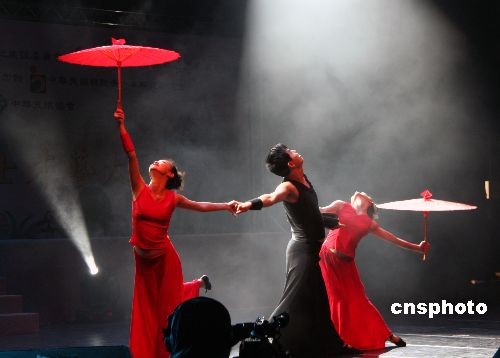 11月30日晚,臺(tái)灣第十二屆“弦月之美”身障人士才藝大展在臺(tái)北舉行。圖為上海殘疾人藝術(shù)團(tuán)的聾人舞蹈演員在晚會(huì)上表演舞蹈《紅黑傘》。 中新社發(fā) 周兆軍 攝