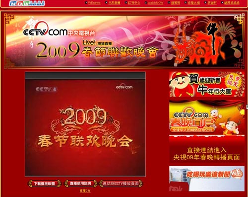 中國(guó)臺(tái)灣網(wǎng)1月25日消息 臺(tái)灣多家媒體在除夕夜對(duì)中央電視臺(tái)2009年春節(jié)聯(lián)歡晚會(huì)進(jìn)行了網(wǎng)上直播,兩岸同胞共賞春晚,歡度春節(jié)喜迎牛年。