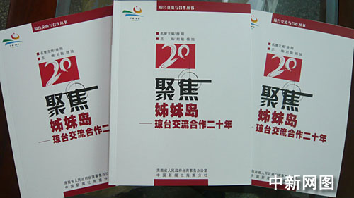 為紀念海南建省辦經(jīng)濟特區(qū)20年,感謝致力瓊臺兩島交流合作的兩岸有識之士,海南省臺辦、中新社海南分社聯(lián)合編著《聚焦姊妹島——瓊臺交流合作20年》一書。該書以新聞報道的形式,詳實、生動地再現(xiàn)了瓊臺交流的歷程和重大歷史事件,反映了20年來瓊臺交流合作取得的重要成果。