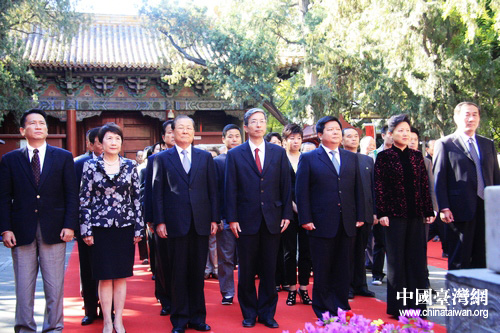 國臺(tái)辦主任助理龍明彪(右三)、北京市政協(xié)副主席蔡國雄(中)、中國國民黨中評(píng)會(huì)主席團(tuán)主席饒穎奇及夫人(左二、三)等嘉賓出席祭孔大典。(中國臺(tái)灣網(wǎng) 馬迪 攝)