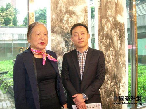 青年畫家周國棟與臺(tái)灣知名畫家舒曾子合影。(淄博臺(tái)辦 王淑紅 攝)