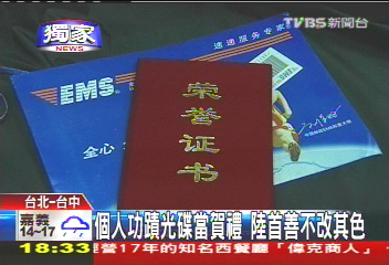 中國臺灣網(wǎng)2月15日消息 據(jù)臺灣TVBS電視臺報道,近日,臺灣一些媒體記者陸續(xù)收到兩份禮物,寄件人不是別人,正是日前赴臺行善的“大陸首善”陳光標。據(jù)悉,陳光標年前到臺灣發(fā)紅包,宣稱捐出5億新臺幣,一舉一動成媒體關(guān)注焦點。陳光標2月1日回大陸后,曾經(jīng)隨行采訪的臺灣記者都收到他親筆簽名的賀年卡,之后陳光標又快遞一份榮譽證書,稱贊臺灣記者報道行善吃苦敬業(yè),特授予功德無量獎。