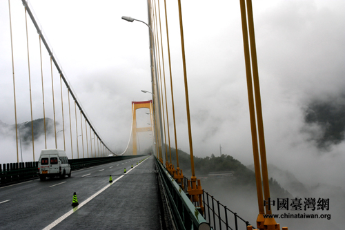 中國臺灣網(wǎng)9月19日恩施消息 今天上午,兩岸記者恩施文化旅游采風(fēng)團乘車從宜昌奔赴恩施,沿途領(lǐng)略了神奇的滬蓉西高速公路,煙雨蒙蒙中感受著天路傳奇。