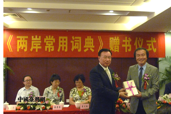 中國(guó)臺(tái)灣網(wǎng)9月4日北京消息 經(jīng)過兩岸學(xué)者歷時(shí)兩年的精誠(chéng)合作和細(xì)心編纂,大陸版、臺(tái)灣版《兩岸常用詞典》8月在兩岸相繼出版。4日,該書贈(zèng)書儀式在京舉行。
