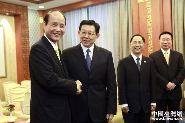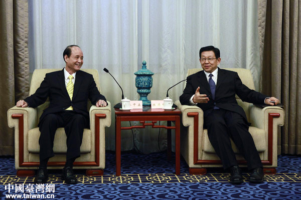 海峽兩岸關(guān)系協(xié)會(huì)會(huì)長陳德銘13日在北京會(huì)見了臺(tái)灣;鶗(huì)董事長林中森及其率領(lǐng)的臺(tái)灣媒體高層大陸參訪團(tuán)。(中國臺(tái)灣網(wǎng) 王偉 攝)