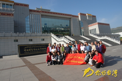 臺(tái)灣嘉賓在藏醫(yī)藥文化博物館門前合影(你好臺(tái)灣網(wǎng) 圖)
