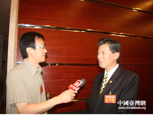 臺北企業(yè)家菁英會會長吳木川正在接受本網(wǎng)記者和廈門衛(wèi)視記者的聯(lián)合采訪。(中國臺灣網(wǎng) 肖燕 攝)