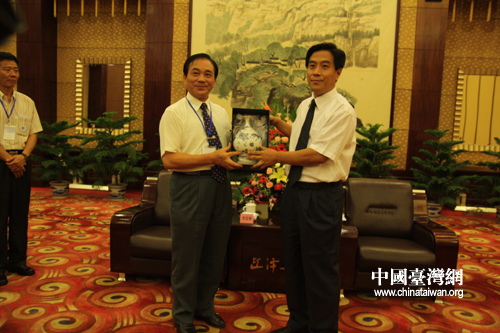 臺(tái)灣青年團(tuán)向山西省委常委、秘書(shū)長(zhǎng)高建民贈(zèng)送臺(tái)灣瓷器(中國(guó)臺(tái)灣網(wǎng) 陳寧 攝)