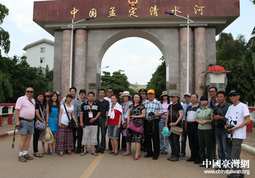 兩岸三地記者孟定清水河口岸留影。(云南省臺(tái)辦 蘇輝 攝)