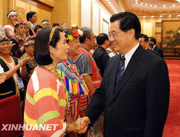 胡錦濤首先對臺灣少數(shù)民族代表團來大陸參訪表示熱烈歡迎,并向臺灣少數(shù)民族同胞致以誠摯問候。
