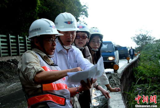 10月25日,海峽兩岸旅游交流協(xié)會(huì)臺(tái)北辦事處主任范貴山(左2)、海峽兩岸旅游交流協(xié)會(huì)副秘書(shū)長(zhǎng)李亞瑩(左3)等,來(lái)到發(fā)生大面積塌方的臺(tái)灣蘇花公路114.5公里現(xiàn)場(chǎng),實(shí)地了解相關(guān)情況和救援進(jìn)展。