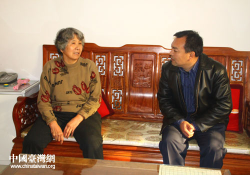 桓臺縣臺辦主任薛偉與臺屬徐素英親切交談。(圖片來源:桓臺縣臺辦)