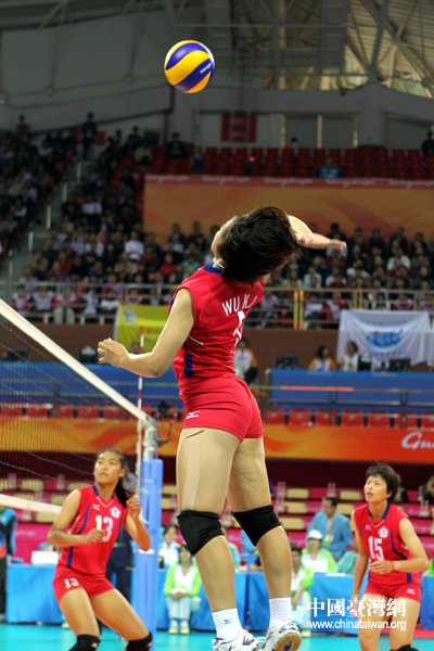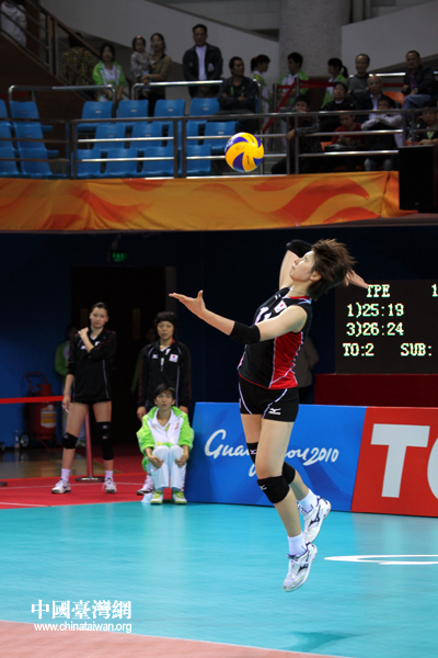 中國臺(tái)灣網(wǎng)11月19日廣州消息 18日下午,廣州亞運(yùn)會(huì)女排預(yù)賽開打,中華臺(tái)北隊(duì)2:3惜敗日本隊(duì)。(記者 鐘寶華)