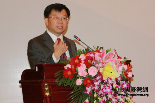 臺灣農(nóng)民團體干部聯(lián)合訓(xùn)練協(xié)會秘書長王志文在開幕式中致辭。(中國臺灣網(wǎng) 郭瑩瑩 攝)