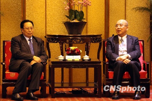 中新社臺北十二月十四日電 (記者 曾嘉 陳立宇)中國國民黨榮譽(yù)主席吳伯雄,十四日晚間在臺北圓山飯店會見了率團(tuán)前來臺灣參訪的中共中央委員、原河南省委書記徐光春。