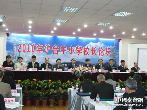 3月19日上午,由臺盟上海市委主辦、上海市普陀區(qū)教育局承辦的“2010年滬臺中小學(xué)校長論壇”在上海市江寧學(xué)校舉行。圖片來源:上海市臺辦