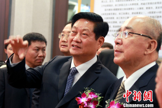 9月14日,陜西省代省長(zhǎng)趙正永率團(tuán)在臺(tái)北出席2010臺(tái)灣陜西周活動(dòng)。當(dāng)日,中國(guó)國(guó)民黨榮譽(yù)主席吳伯雄應(yīng)邀參加“陜西風(fēng)情節(jié)”活動(dòng),趙正永為吳伯雄作導(dǎo)覽。中新社記者 劉舒凌 攝