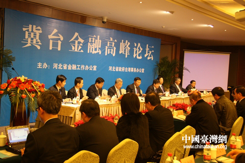 中國(guó)臺(tái)灣網(wǎng)11月30日石家莊消息 由河北省金融工作辦公室、河北省政府臺(tái)灣事務(wù)辦公室主辦的“冀臺(tái)金融高峰論壇”,于11月29日下午在石家莊市內(nèi)舉行。以臺(tái)灣金融服務(wù)業(yè)聯(lián)合會(huì)總會(huì)理事長(zhǎng)許嘉棟為首的“臺(tái)灣金融團(tuán)”一行18人,與河北省銀行、保險(xiǎn)、證券等金融行業(yè)的高層負(fù)責(zé)人一起,相互介紹金融業(yè)發(fā)展?fàn)顩r,展望冀臺(tái)金融交流合作之無(wú)限可能。