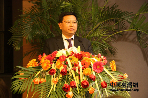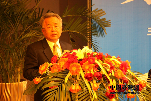 臺(tái)灣金融服務(wù)業(yè)聯(lián)合會(huì)總會(huì)理事長(zhǎng)許嘉棟在論壇上發(fā)言。(中國(guó)臺(tái)灣網(wǎng)記者 馬迪 攝)