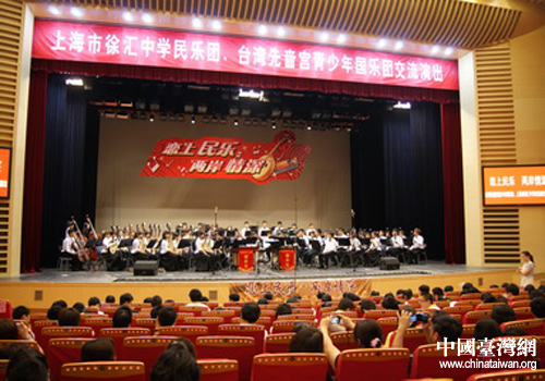 中國(guó)臺(tái)灣網(wǎng)7月26日上海消息 7月24日,臺(tái)灣新北市先嗇宮民樂(lè)團(tuán)和上海徐匯中學(xué)在上海徐匯區(qū)青少年活動(dòng)中心聯(lián)合獻(xiàn)演了“戀上民樂(lè) 兩岸情深”交流會(huì)。徐匯區(qū)教育黨工委書(shū)記王懋功、新北市民政局局長(zhǎng)李乾龍分別致辭。徐匯區(qū)區(qū)委常委、副區(qū)長(zhǎng)趙惠琴、劉曉艷校長(zhǎng)分別與楊義德區(qū)長(zhǎng)、先嗇宮民樂(lè)團(tuán)團(tuán)長(zhǎng)交換了紀(jì)念品。