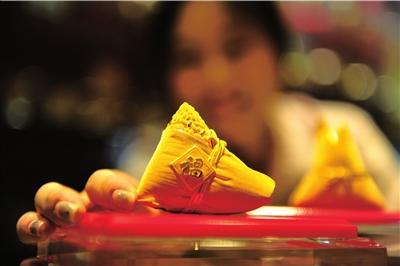 金價(jià)上漲并未影響消費(fèi)者的購(gòu)金熱情,國(guó)華商場(chǎng)近日推出的金粽子擺件。本報(bào)記者胡笑紅攝