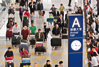 復(fù)活節(jié)長假期昨日結(jié)束,大量外游市民乘飛機回港。