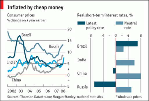 圖片說(shuō)明:2002-2008年金磚四國(guó)通脹走勢(shì)