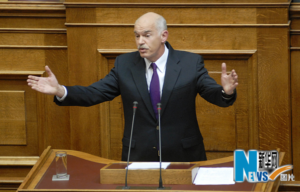 5月6日,在希臘首都雅典,希臘總理帕潘德里歐在議會發(fā)表講話。當(dāng)日,希臘議會經(jīng)過激烈辯論,通過了帕潘德里歐政府提出的新緊縮措施,以換取歐盟和國際貨幣基金組織1100億歐元的救助款。希臘政府需要實(shí)施嚴(yán)厲的緊縮政策,包括大幅削減公務(wù)員工資、增加稅收以及在未來3年內(nèi)削減財(cái)政預(yù)算300億歐元,以便在2014年將財(cái)政赤字控制在國內(nèi)生產(chǎn)總值的3%以內(nèi)。新華社發(fā)