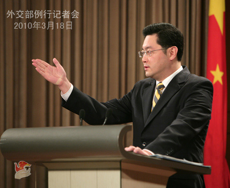 2010年3月18日,外交部發(fā)言人秦剛舉行例行記者會(huì)。