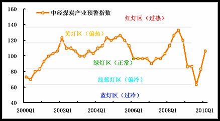 2010年一季度,中經(jīng)煤炭產(chǎn)業(yè)景氣指數(shù)為100.7點(2003年增長水平=100),比上季度上升2.6點。中經(jīng)煤炭產(chǎn)業(yè)預(yù)警指數(shù)為106.7點,較上季度上升23.4點,處于“綠燈區(qū)”內(nèi)運行。中經(jīng)煤炭產(chǎn)業(yè)景氣指數(shù)的變動表明煤炭產(chǎn)業(yè)延續(xù)了上季度持續(xù)向好的態(tài)勢。
