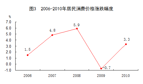 表1:2010年居民消費(fèi)價(jià)格比上年漲跌幅度