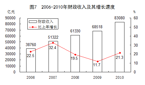 全年財(cái)政收入83080億元,比上年增加14562億元,增長(zhǎng)21.3%;其中稅收收入73202億元,增加13680億元,增長(zhǎng)23.0%。
