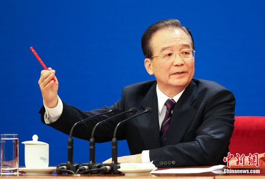 3月14日,國務(wù)院總理溫家寶在北京人民大會堂與中外記者見面,并回答記者提問。中新社發(fā) 王中舉 攝