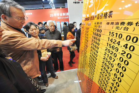 市民在查看用消費(fèi)券購買家電可享受的優(yōu)惠。新華社發(fā)(李忠 攝)