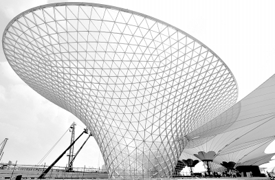 上海世博會世博軸“陽光谷”。上海世博園集成了大跨度索膜結(jié)構(gòu)、“陽光谷”自然采光、雨水收集與回用、江水源和地源熱泵調(diào)控室溫以及冰蓄冷空調(diào)、光伏發(fā)電與建筑一體化、透水地面、垃圾氣力輸送、半導(dǎo)體照明、垂直生態(tài)綠化幕墻、節(jié)能電梯等一大批創(chuàng)新科技。 新華社記者 任瓏 攝
