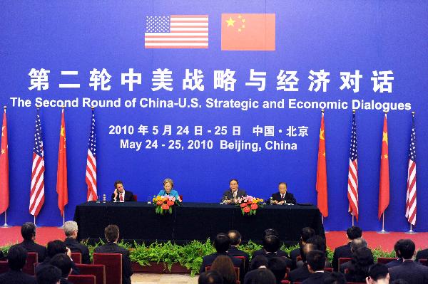 5月25日,第二輪中美戰(zhàn)略與經(jīng)濟(jì)對話記者招待會(huì)在北京人民大會(huì)堂舉行。 新華社記者張鐸攝