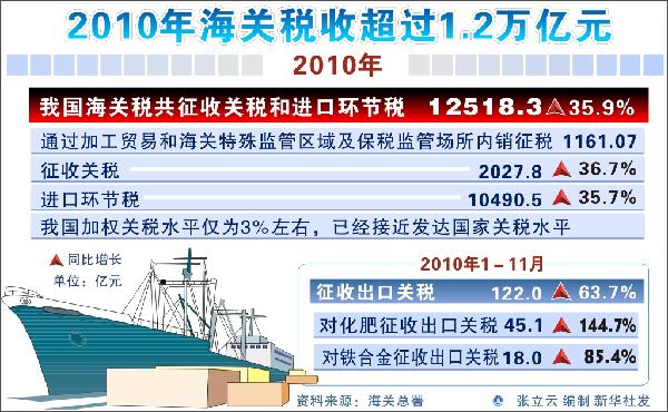 圖表:2010年中國海關稅收超過1.2萬億元 新華社發(fā)