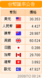 臺(tái)幣匯率公告2008.07.02