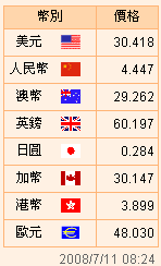 臺幣匯率公告2008.07.11