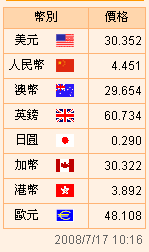 臺幣匯率公告2008.07.17