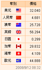 臺幣匯率公告2008.09.12