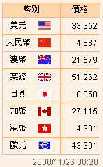 臺(tái)幣匯率公告2008.11.26