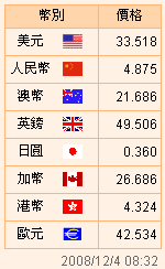 臺幣匯率公告2008.12.04