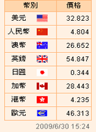 臺(tái)幣匯率公告2009.06.30