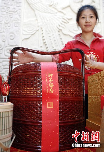 據(jù)中新網(wǎng)財經(jīng)頻道了解,在某購物網(wǎng)站搜索“月餅禮盒”,價格最高的是號稱“故宮督造”的御茶膳房天圓籃,標價1880元,銷售信息顯示該禮籃包括6種口味24個粽子、五福餅1盒、茶寶1個、蓋碗1個、竹筒茶1個、古越龍山十年陳釀一套,紅色香包配飾1個。