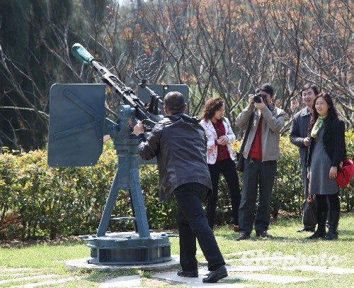 目前中國大陸已有25個省市居民可經(jīng)福建與金門、媽祖的“小三通”通道赴臺旅游,金門因而成為大陸游客的旅游新熱點。圖為金門的戰(zhàn)地景物吸引大陸游客攝影留念。 中新社發(fā) 耿軍 攝