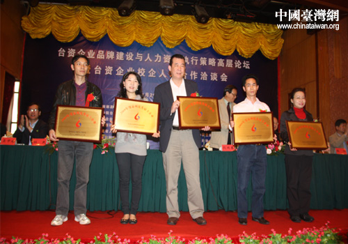 “2009年度泉州市臺資企業(yè)雇主優(yōu)秀獎”頒獎典禮今日在泉州酒店舉行,5家臺資企業(yè)獲此殊榮。圖為獲獎企業(yè)代表領(lǐng)獎。(中國臺灣網(wǎng) 胡珊珊 攝)