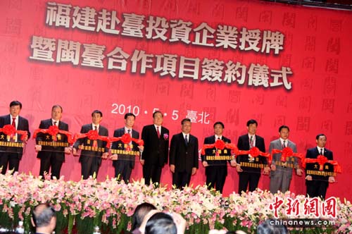 5月5日下午,“福建赴臺投資企業(yè)授牌暨閩臺合作項目簽約儀式”在臺北舉行,福建省長黃小晶、中國國民黨副主席曾永權(quán)為8家已獲兩岸行政部門核準(zhǔn)的企業(yè)授牌,兩地企業(yè)代表還就數(shù)十個合作項目簽約。