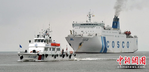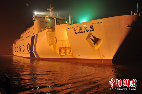 海巡艇為中遠(yuǎn)之星護(hù)航進(jìn)港。葉云強(qiáng) 攝